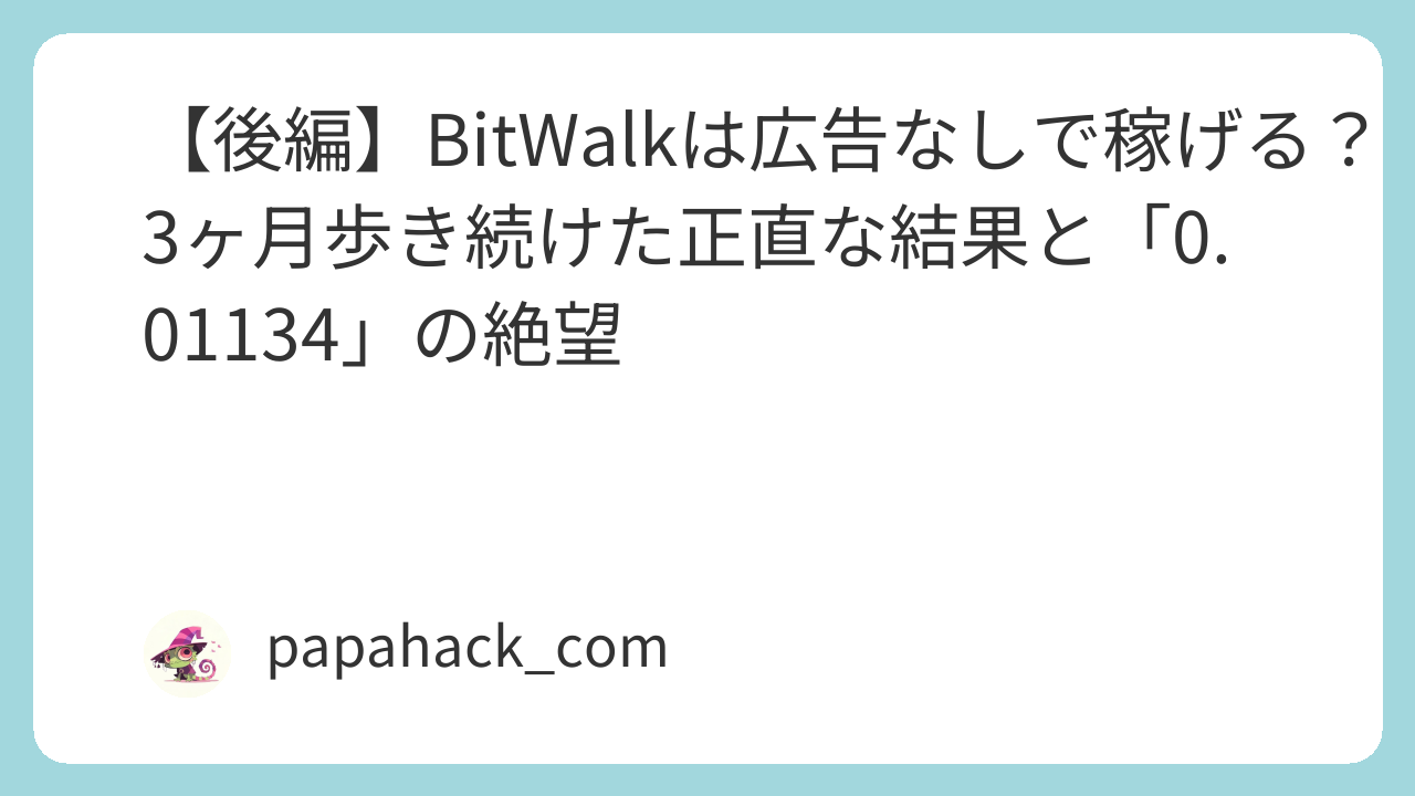 こんにちは。 前回、「広告視聴なしでビットウォーク(BitWalk)は稼げるのか?」という検証を開始しましたが、今回はその【後編】です。